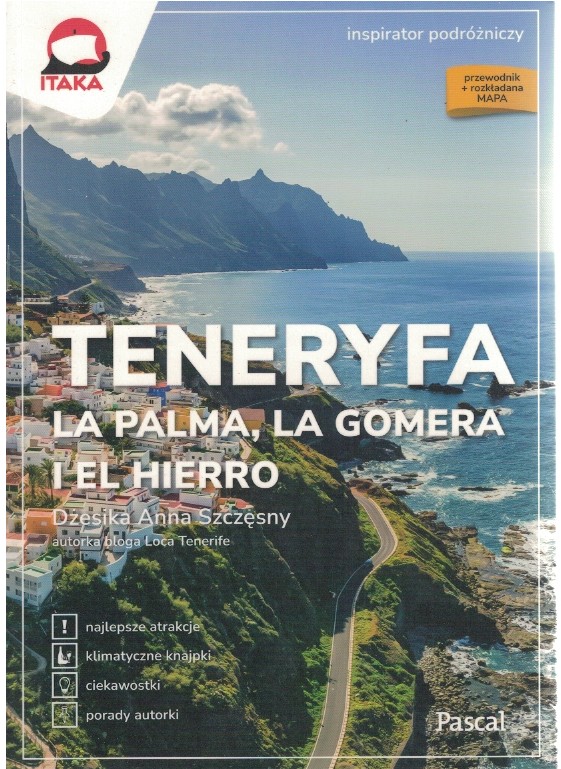 Twój inspirator zaprowadzi cię w każdy zakamarek Teneryfy. Nic cię nie ominie! Z nami zatańczysz w kolorowym orszaku podczas słynnego karnawału w Santa Cruz de Tenerife, ujrzysz Klify Gigantów w całej okazałości, spróbujesz kanaryjskich bananów i kultowych papas arrugadas, wybierzesz najpiękniejszą z wyjątkowych plaż pokrytych czarnym piaskiem, zdobędziesz najwyższy szczyt Hiszpanii – wulkan El Teide. Wspólnie z Dżesiką Anną Szczęsny opracowaliśmy przewodnik po królestwie fiesty. Znajdziesz w nim rankingi atrakcji i rekomendacje autorki, knajpki polecane przez miejscowych, intuicyjną nawigację, a do wszystkich wyjątkowych miejsc doprowadzi cię rozkładana mapa.