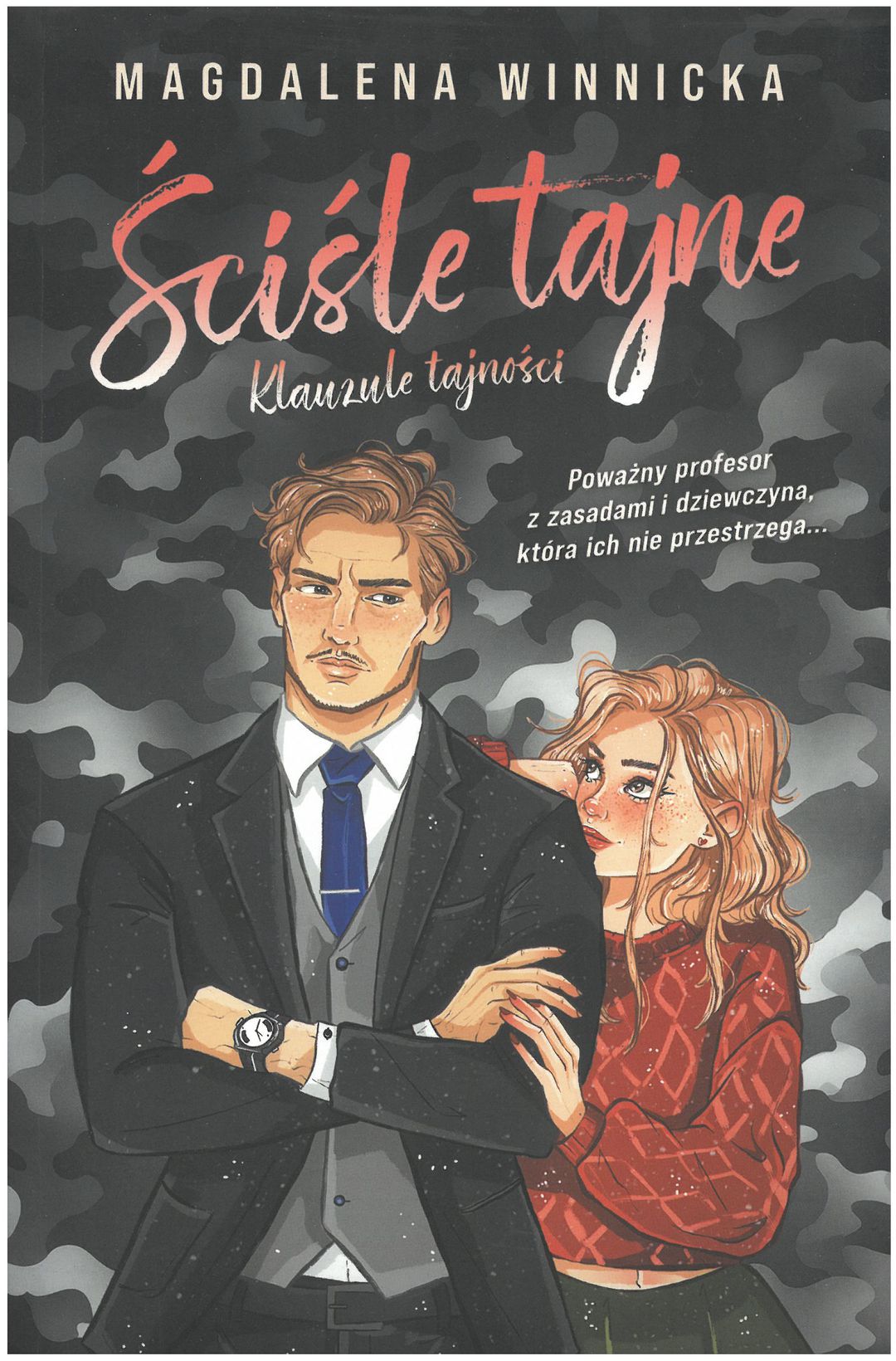 Romans z wybuchową mieszanką sarkazmu, pożądania i słodyczy, który spowoduje niekontrolowane napady śmiechu. Krystian to chodzący kodeks i mistrz dystansu, a przy tym major ABW i wykładowca w Wyższej Szkole Kryminologii i Kryminalistyki. W życiu kieruje się prostymi zasadami. Jest zadanie do wykonania, trzeba je zrealizować. Nie ma miejsca na półśrodki. A także na uczucia. To nie jego działka. I naprawdę w to wierzy! Naiwność tego mężczyzny to jedna z wielu rzeczy, które urzekają Sarę. Ta urocza dziewczyna o niepokornych myślach z anielską cierpliwością powstrzymuje się przed kwestionowaniem postanowień swojego nieco cynicznego profesora. Z wielką radością przymknęłaby też oko na granice, które ten wyznacza. I bardzo chętnie przestrzegałaby wszystkich jego bezsensownych zasad. Tylko co mogłoby wyniknąć ze starcia burzowej chmury z promieniem słońca? Może lawina śmiechu, elektryzująca chemia między bohaterami i uczucia, które rozwijają się powoli, ale kipią od tłumionego napięcia? Jedno jest pewne - wszystko musi pozostać… ściśle tajne!